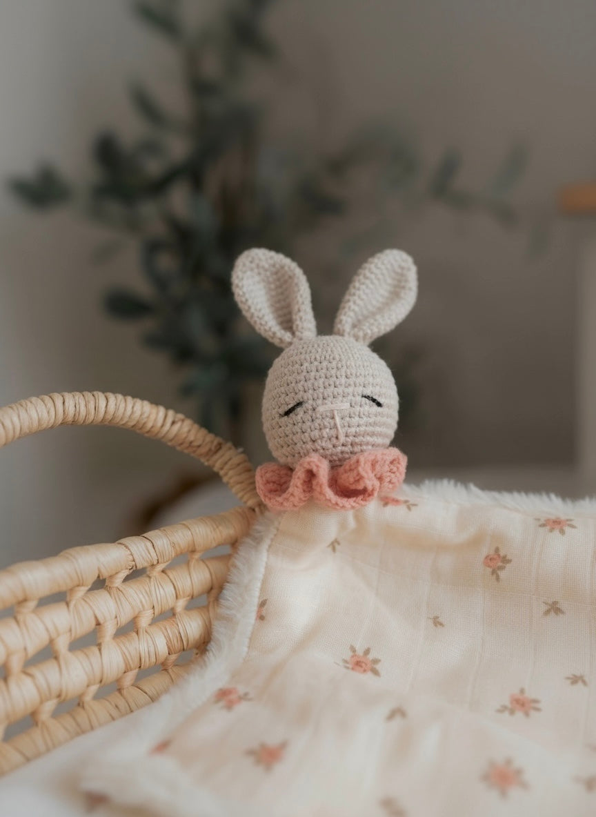 Give your baby a cocoon of tenderness with our lovey, thoughtfully designed to comfort, cuddle, and accompany little ones through their most precious soothing moments.
